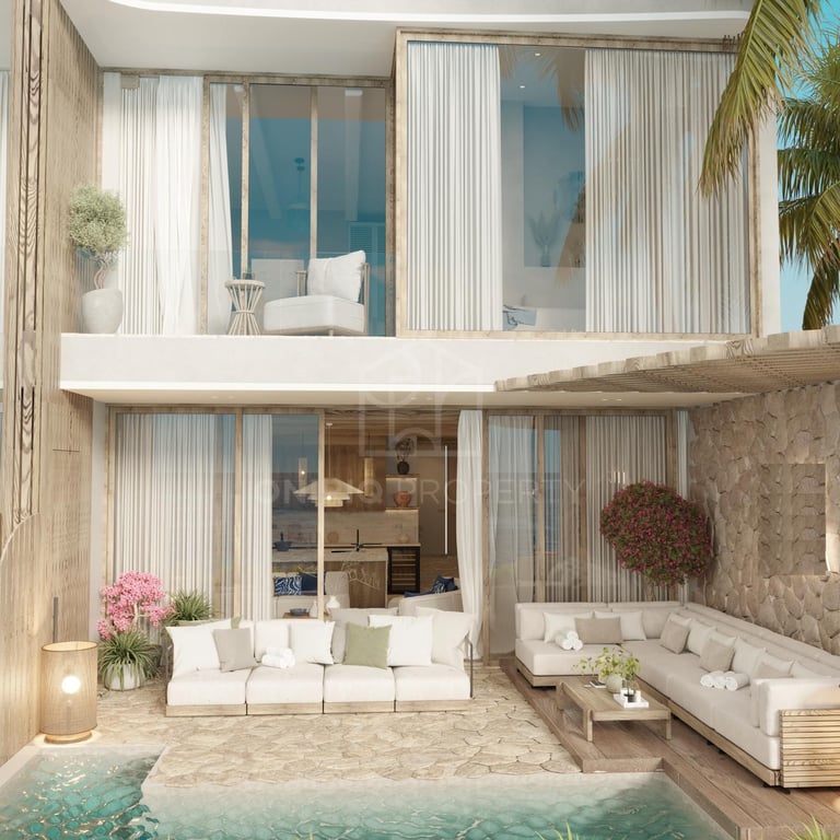 Built on 106 sqm of land with a 157 sqm building size, the villa offers a smart and efficient layout across two levels. The ground floor features an open-plan kitchen, living, and dining area, a guest toilet, and direct access to the pool and decking area, creating a seamless connection between indoor comfort and outdoor relaxation. On the second floor, you’ll find two bedrooms, each with its own bathroom, wardrobe, and access to a shared terrace overlooking the tropical surroundings.